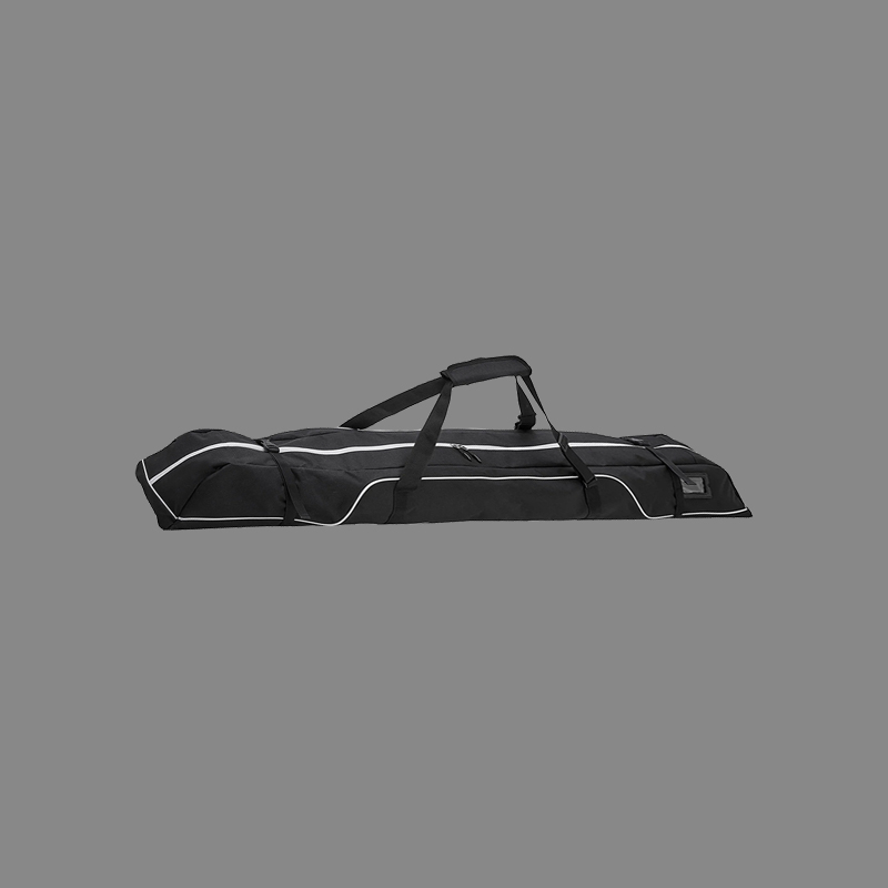 This snowboard travel bag features a wide zipper opening for convenient storage of skis, boots, and a helmet.